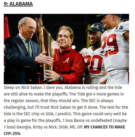 But enough with that, and lets get into my first CFB Playoff Outlook for each contending team: