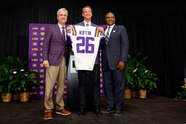 Kiffin’s tenure at OM was program-changing: He delivered four double-digit win seasons in six years, with a 55-19 overall record. All the program building ended up for nothing and created one of the messiest exits ever. Kiffin pressured assistants to join him at LSU, even stating that if they didn’t get on the plane with him to LSU, they wouldn’t have a spot on staff. Most offensive staff departed, though offensive coordinator Charlie Weis Jr. was allowed to just coach the CFP. Recruiting loomed large. #1 Overall commit Lamar Brown welcomed Kiffin, and the move also positioned him to poach Ole Miss players via the portal, as seen in his social media posts emphasizing LSU’s NIL advantages with a repost from Kiffin mentioning him signing more 5-stars in 5 days than he did in 6 years in Oxford.